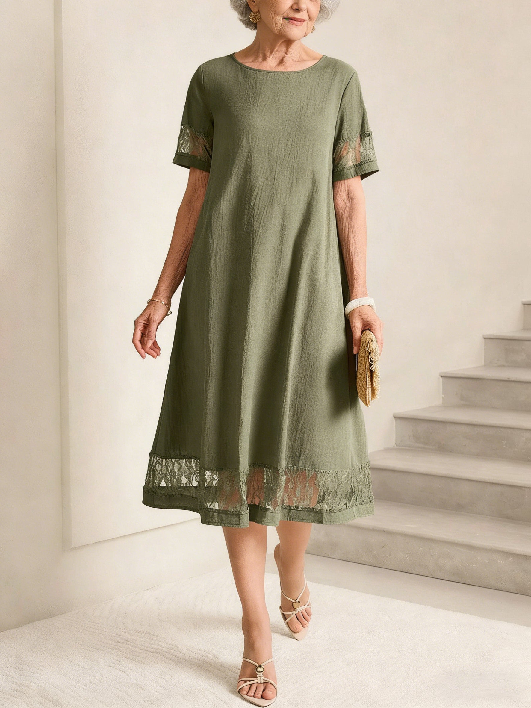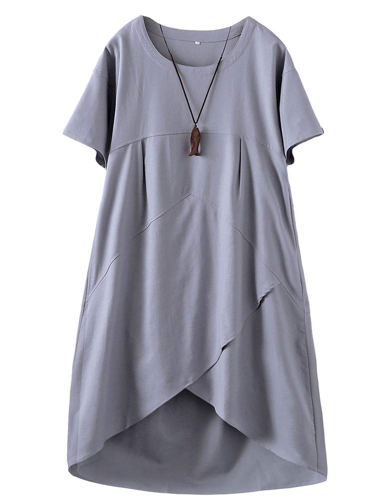 Women's Linen Cotton Pocketed Oversized Midi Dress