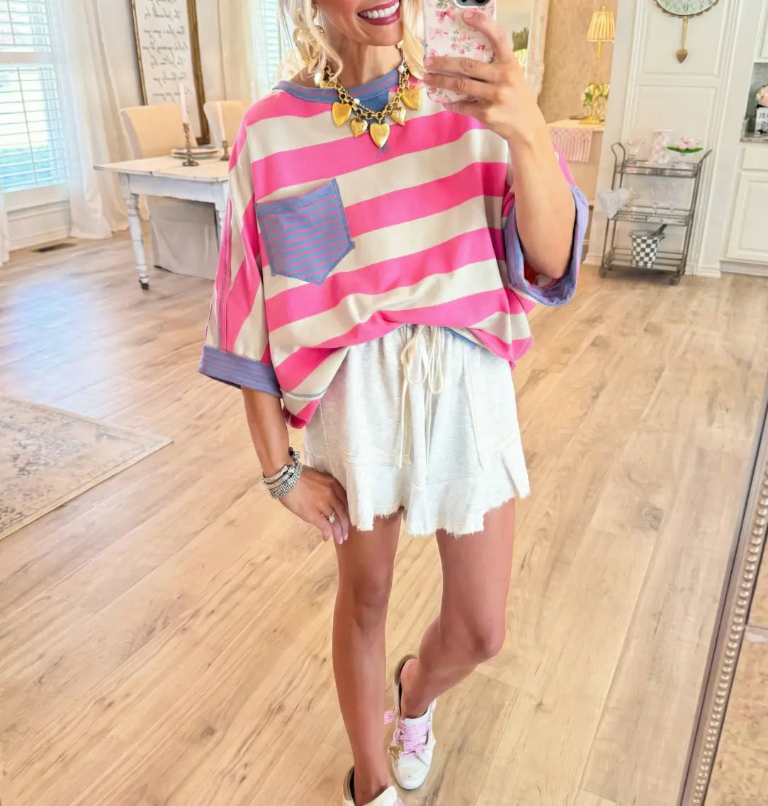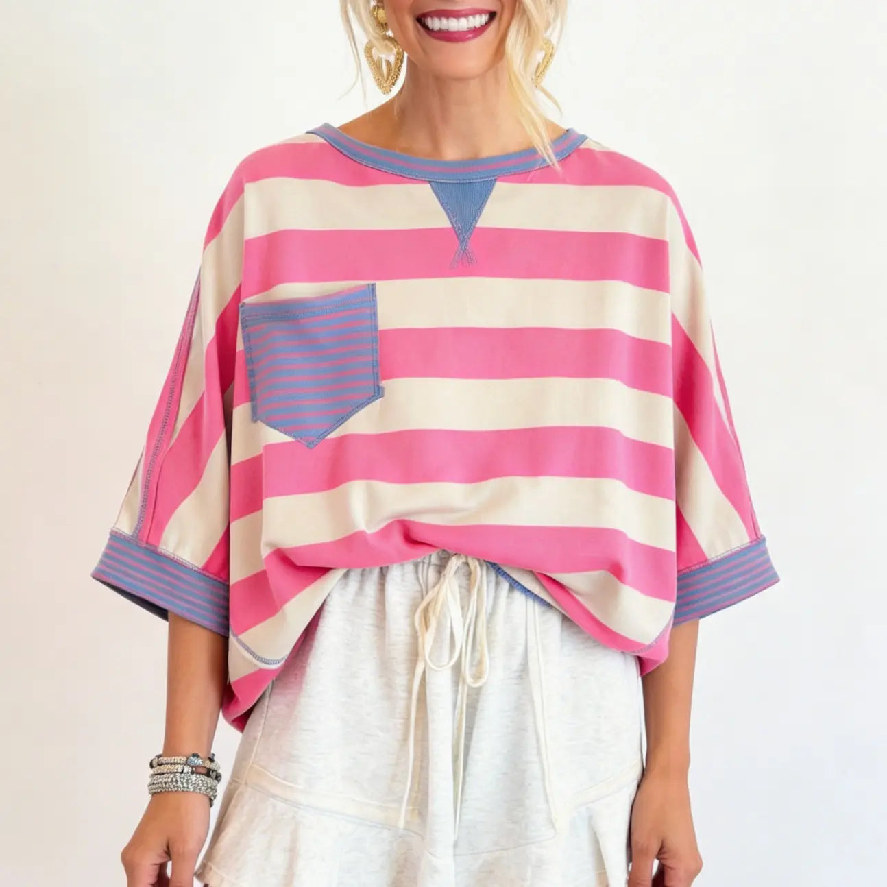 Womens Oversized Striped T-Shirts Summer Casual Color