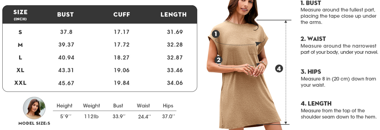 Summer crewneck short sleeve t-shirt dress, loose fit for a comfy slouchy look, with practical pockets, perfect for daily outings and casual loungewear.
